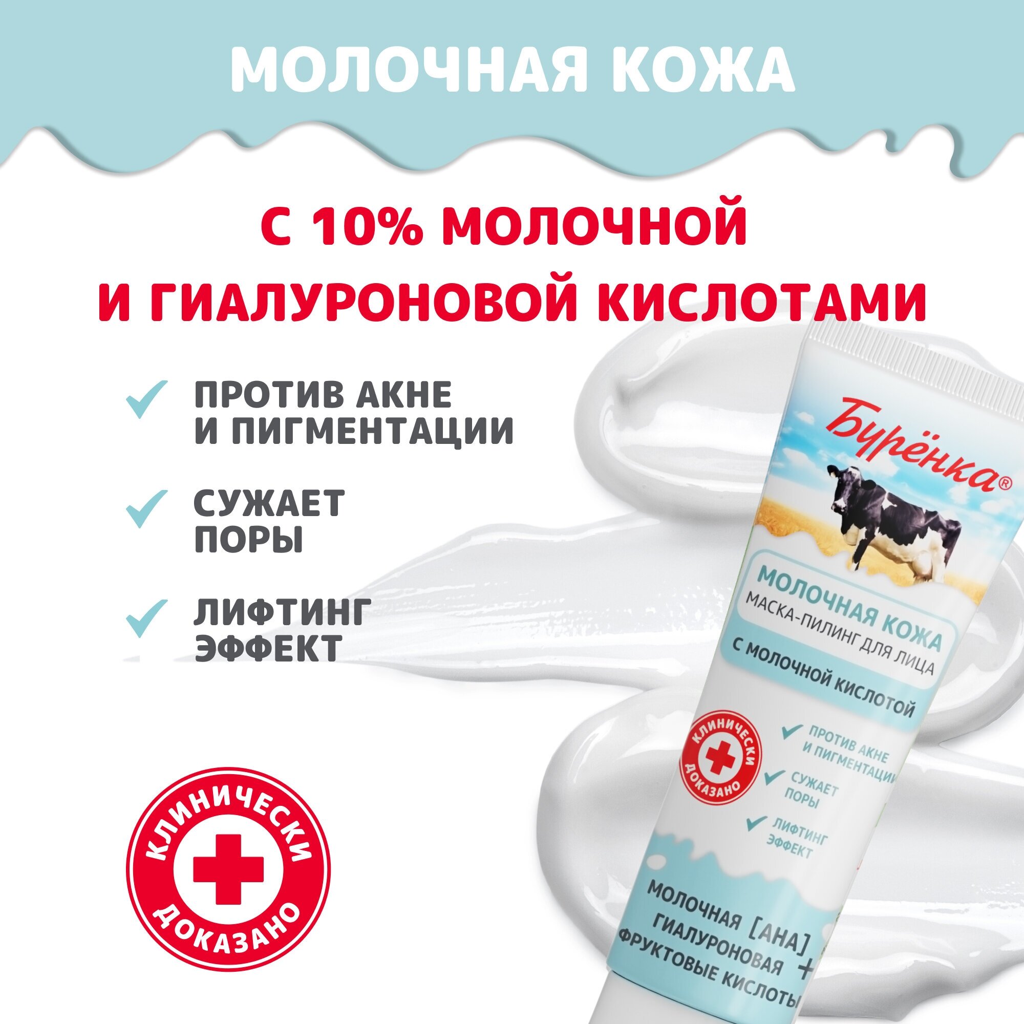 Маска пилинг для лица кислотная Бурёнка, профессиональная против пигментации с Молочной и Гиалуроновой кислотами 100мл информация: