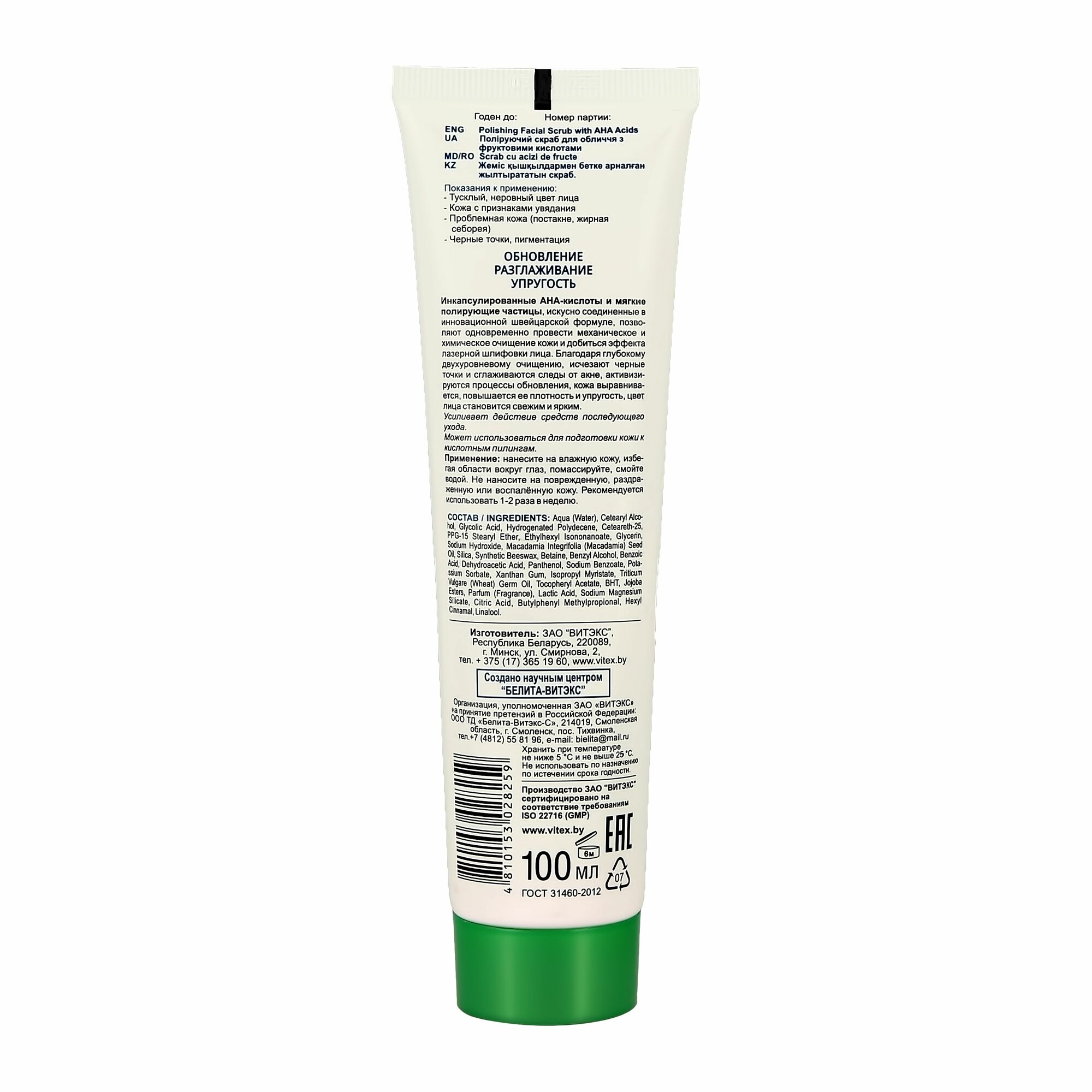 Витэкс скраб для лица Skin AHA Clinic полирующий с фруктовыми кислотами 100 мл информация: