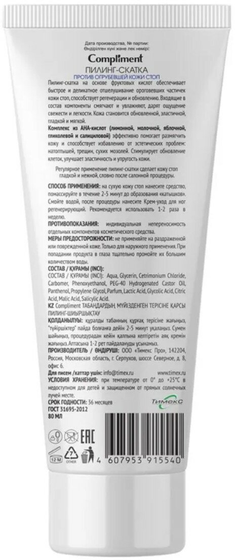 Пилинг скатка для ног против огрубевшей кожи стоп 80мл информация: