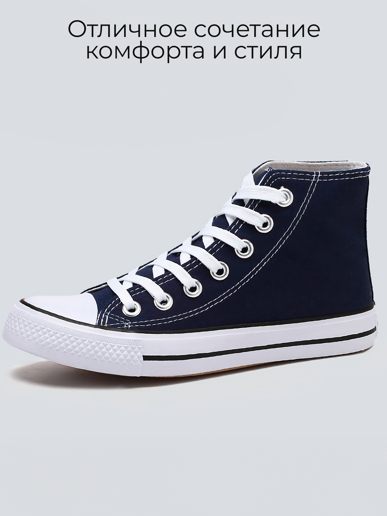 Отзывы на Мужские высокие кеды на плоской подошве из холщовой ткани повседневные кроссовки в корейском стиле (Синие) размер 41