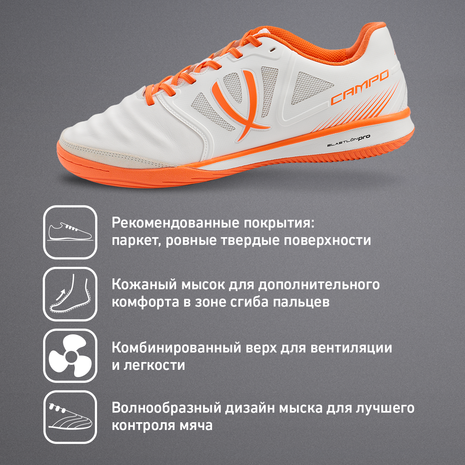 Бутсы зальные Jögel CAMPO White/orange, белый/оранжевый 39 9 090 ₽