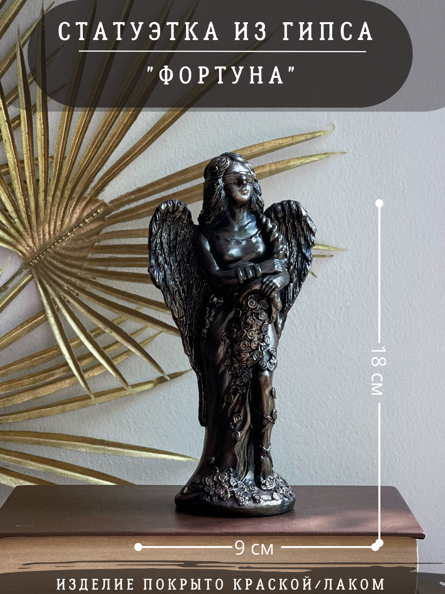 Статуэтка Богиня Фортуна, 18 см, гипс, черный цвет с бронзовым напылением, декор для удачи информация:
