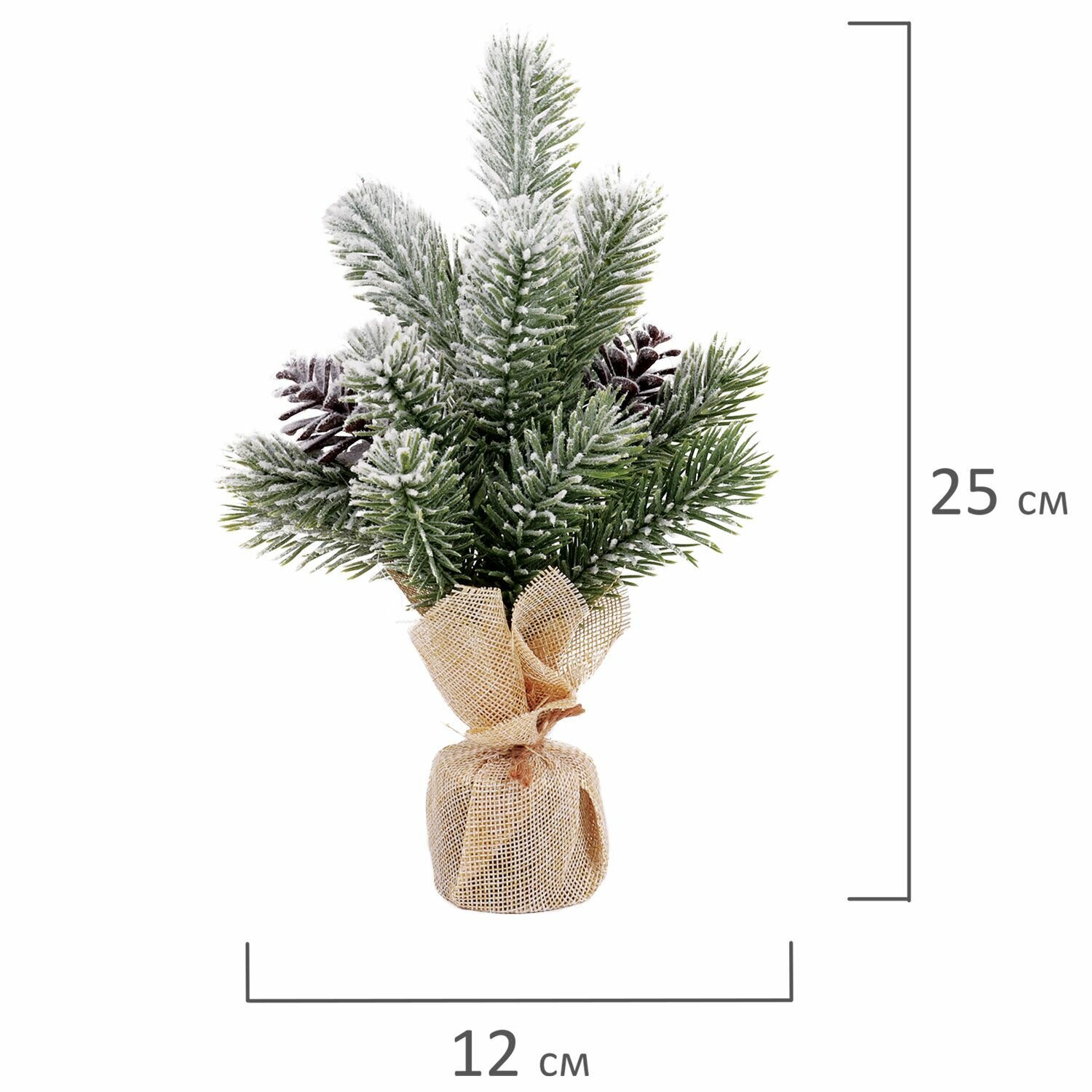 Елка искусственная новогодняя настольная 25 см, заснеженная, с шишками, литой ПЭТ информация: