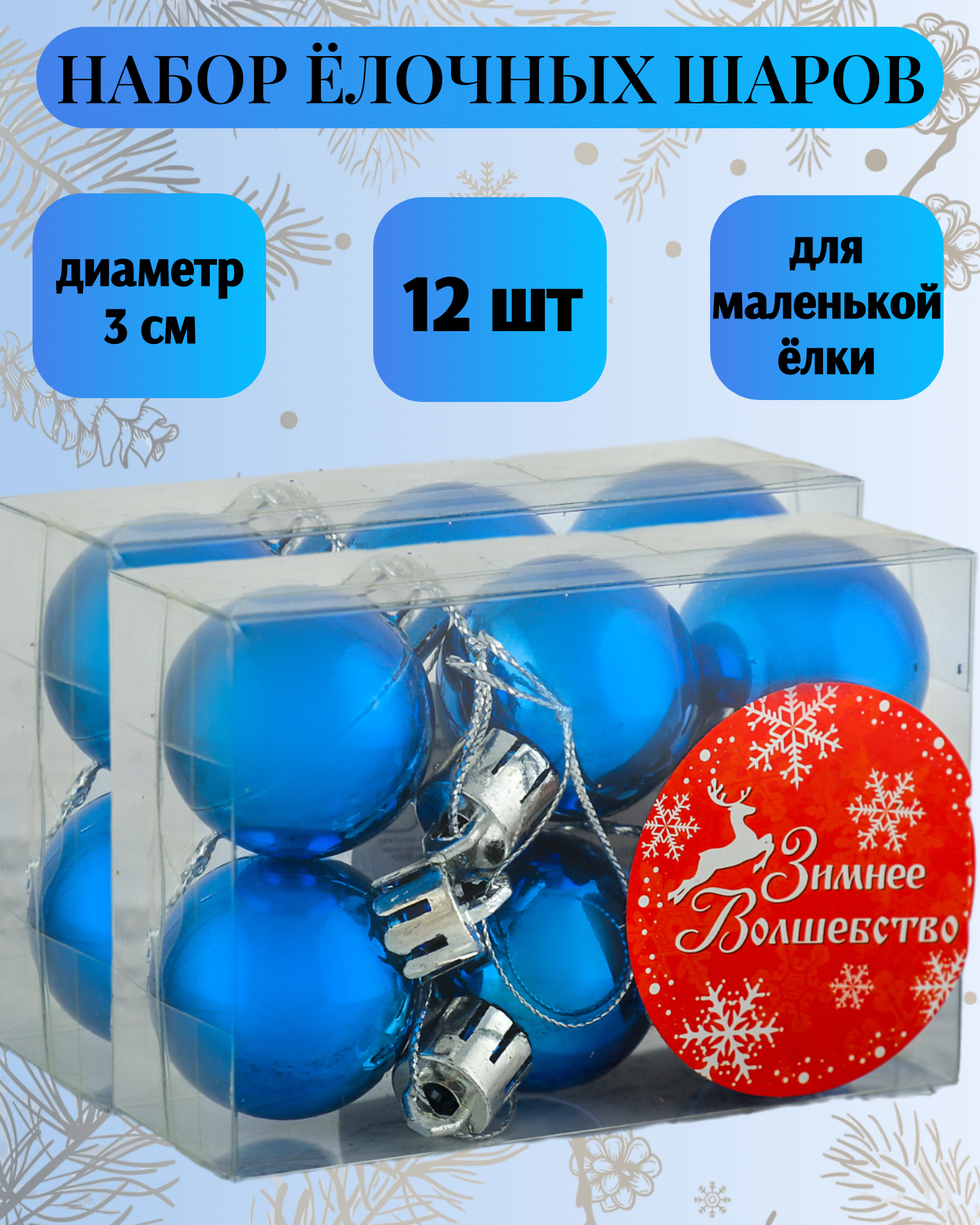 Набор елочных шаров Winter Magic "Глянец", пластик, 12 шт, синий, диаметр 3 см, для маленькой елки информация: