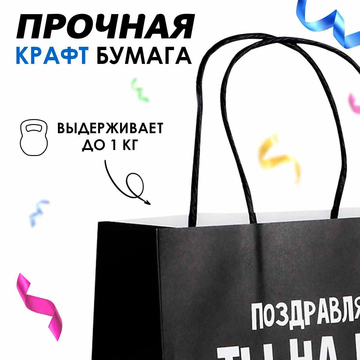 Пакет подарочный с приколом «Поздравляю», 22 х 22 х 11 см, для упаковки подарка 194 ₽