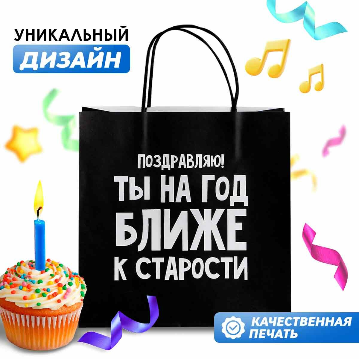 Пакет подарочный с приколом «На год ближе к старости», 22 × 22 × 11 см информация: