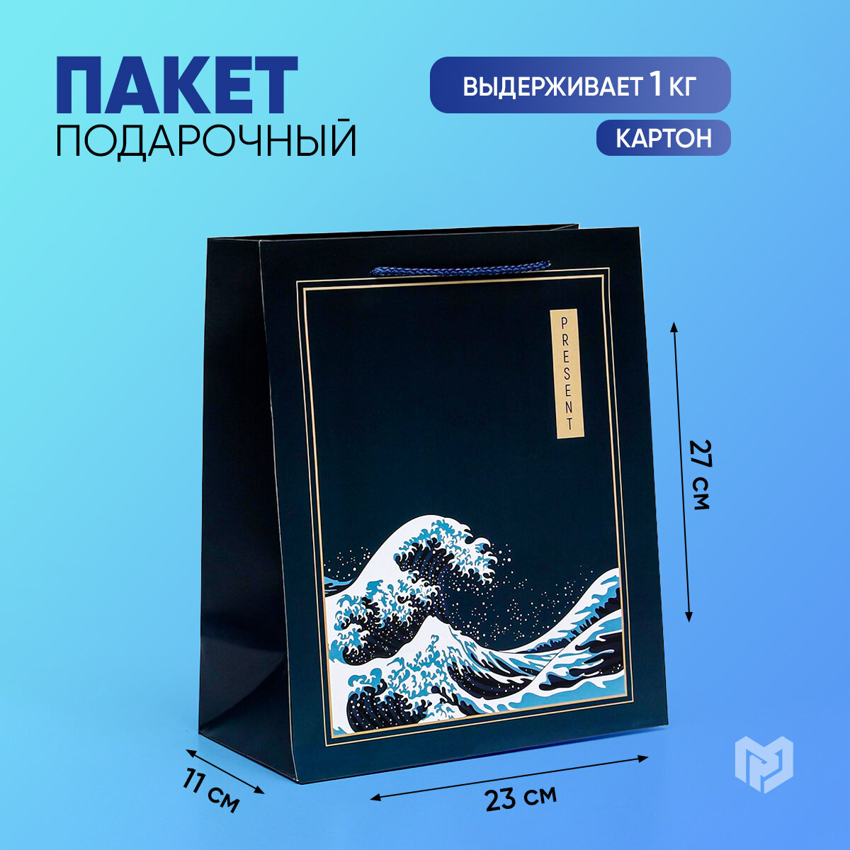 Пакет подарочный «Present», 23 × 27 × 11,5 см, для упаковки подарка информация: