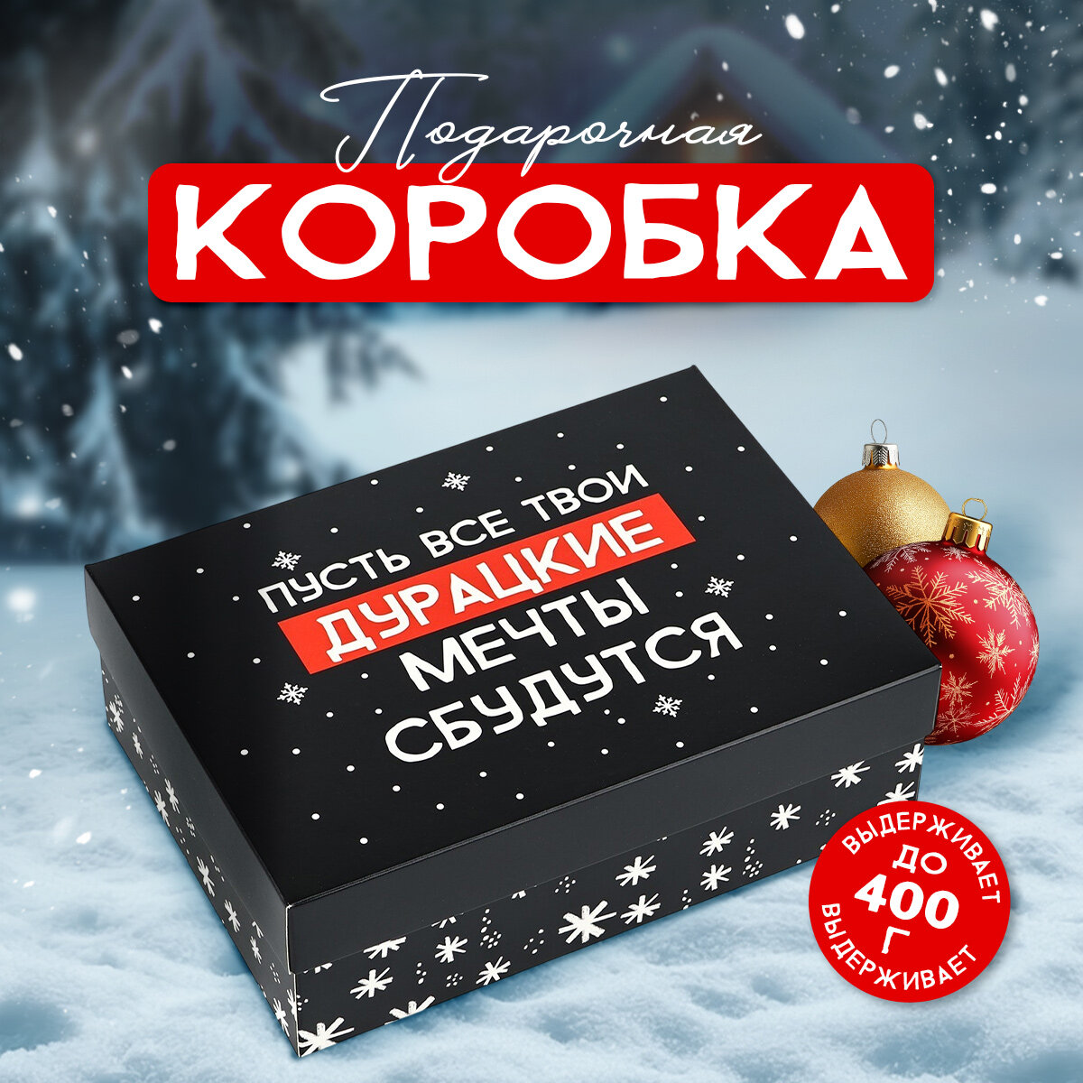 Отзывы на Коробка подарочная новогодняя «Мечты сбудутся», 21 х 15 х 7 см, чёрная, картон, для упаковки подарка на Новый год
