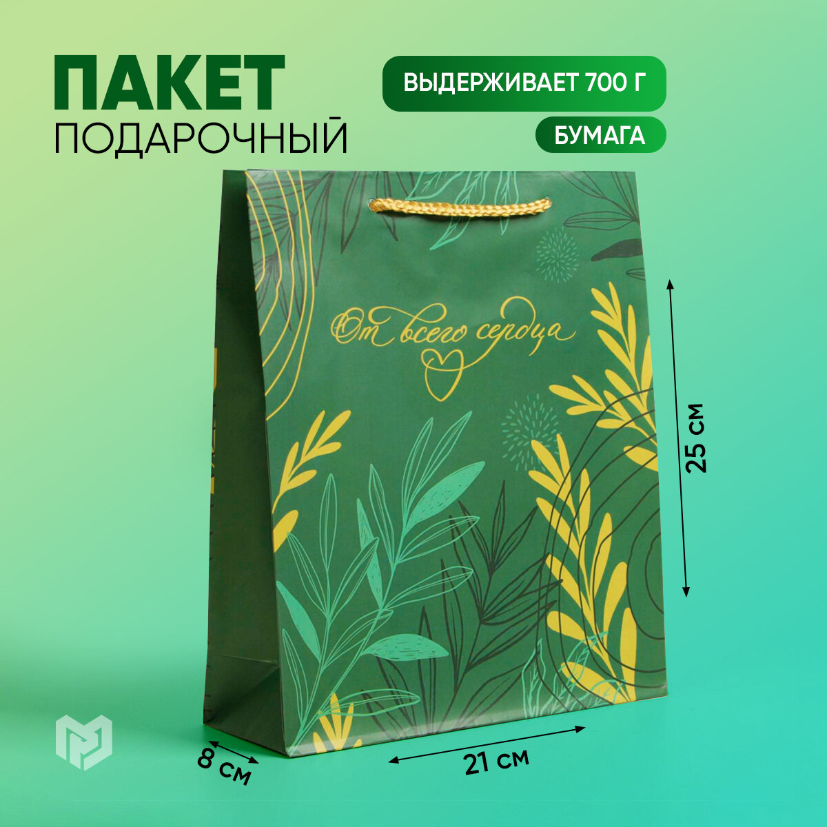 10 цен на Пакет подарочный "Present with love", ML 21 х 25 х 8 см, зеленый, для упаковки подарка
