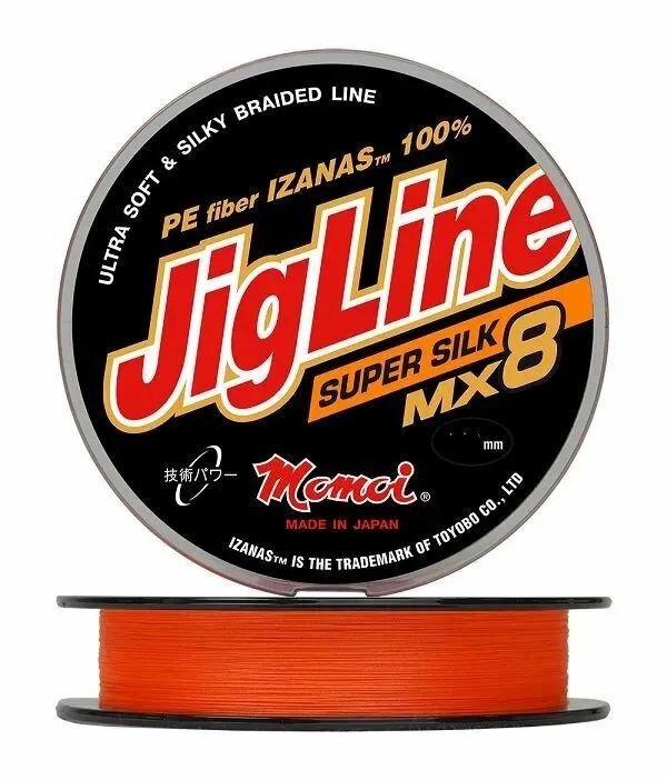 Плетеный шнур для рыбалки Momoi JigLine MX8 Super Silk 100м, 0,08мм, 6,2кг, оранжевый