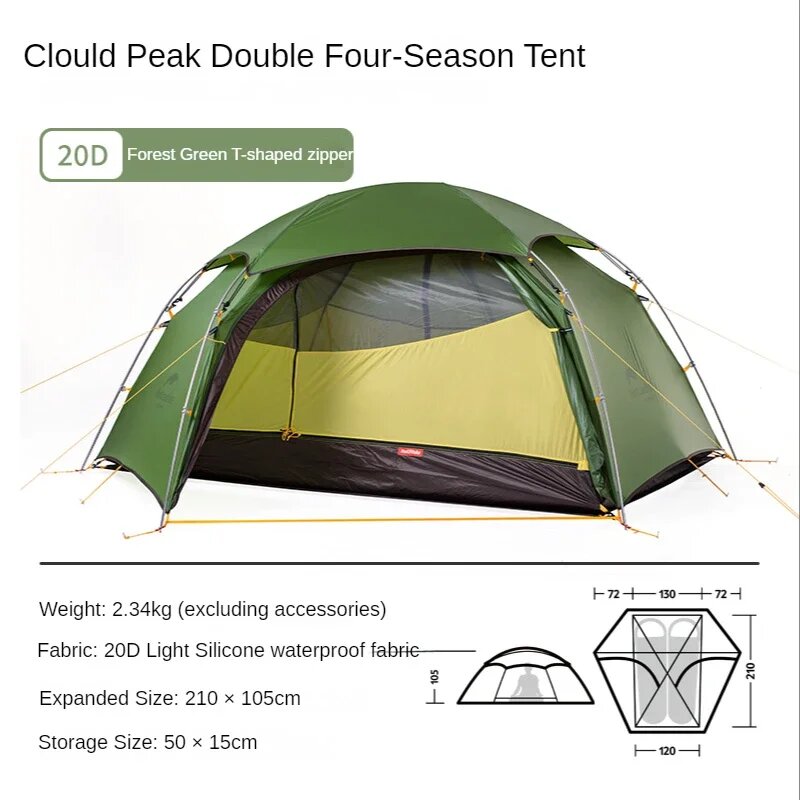 Палатка Naturehike Cloud Peak 15D Всесезонная, на 2-3 человек, походная двухслойная, непромокаемая, для отдыха на открытом воздухе, походов