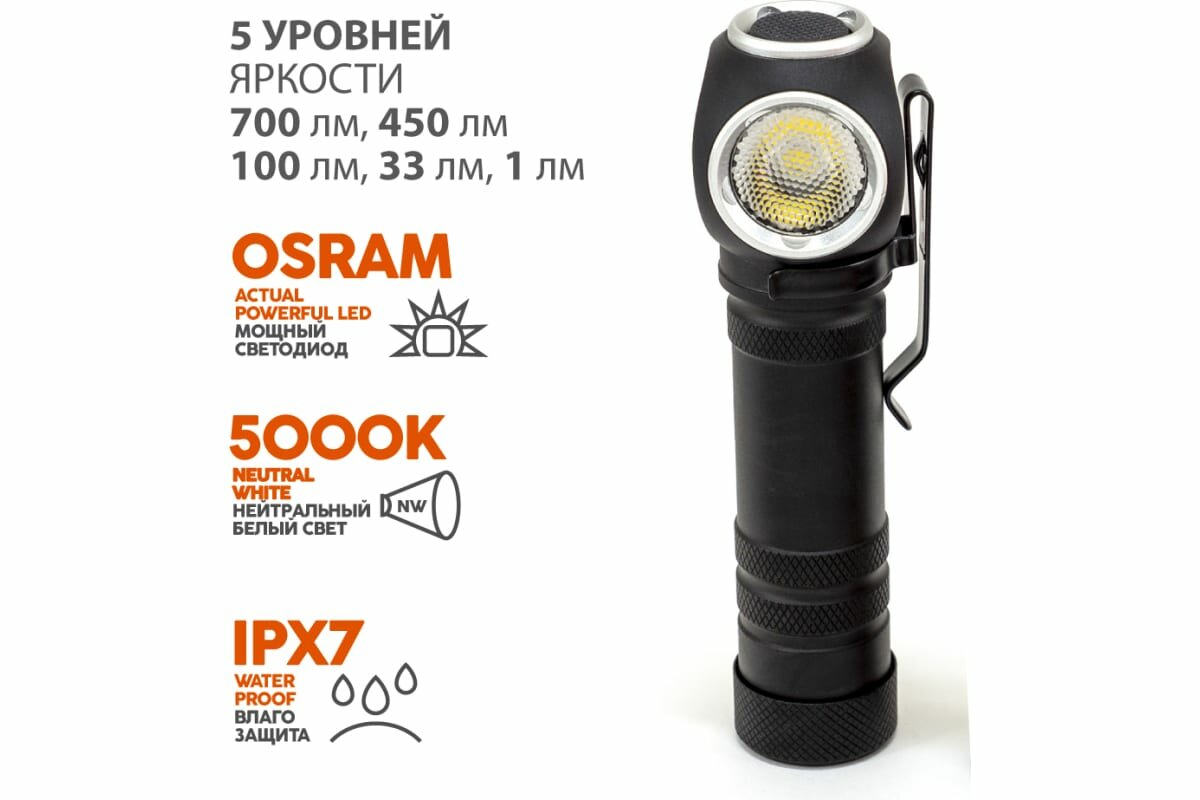 Яркий ЛУЧ Фонарь LH-700 ENOT PRO ACCU налобн/ручной OSRAM P9 700лм, акк YLP 18650 3400mah с встр. ЗУ 4606400106838