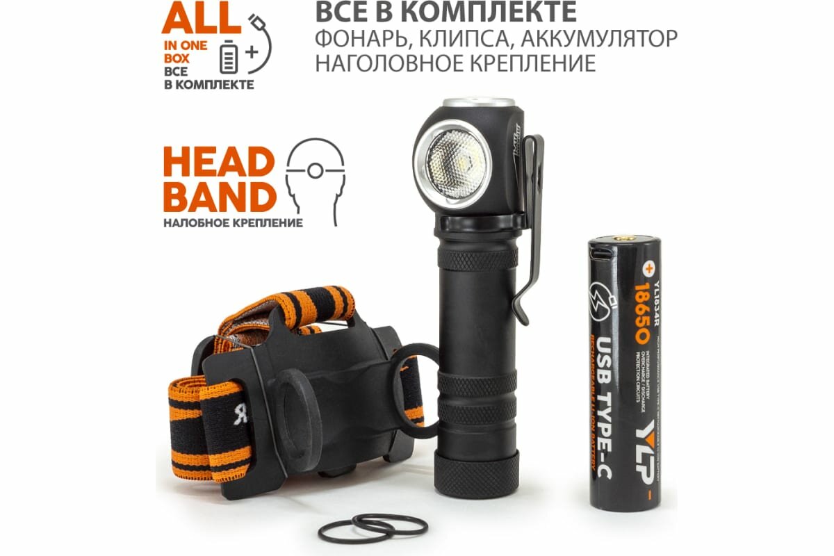 Фонарь налобный яркий ЛУЧ YLP PANDA 4.2R Cree XP-L HI +2 Sams. LH351D High-CRI, max1500лм, акк.2600mAh