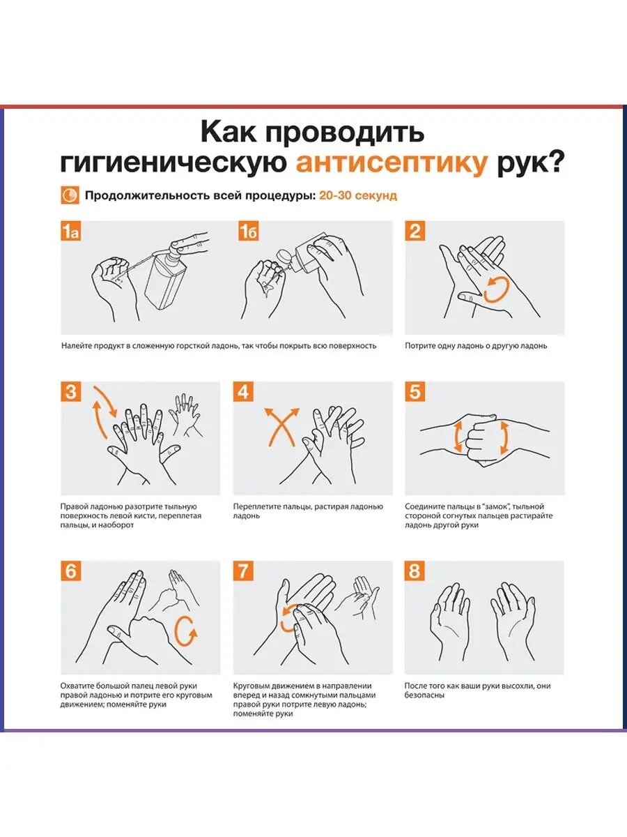 | Способ применения | гигиеническая обработка рук: на кисти рук наносят 3 мл средства (одно нажатие) и втирают в кожу в течение 20 секунд. Обработка инъекционного поля: кожу протирают стерильным ватным тампоном, обильно смоченным средством или способом орошения кожи в месте инъекции. Время выдержки - 1 минута |