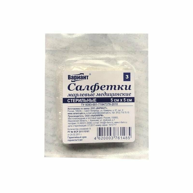 10 цен на Салфетка стер 5х5см 8сл 17нитей 3шт/уп Вариант 2000 уп/кор