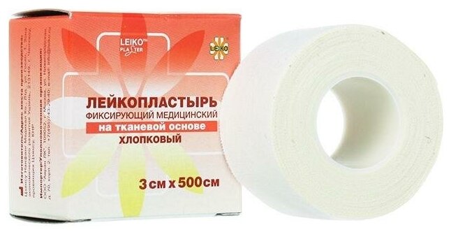 Лейкопластырь рулонный фиксирующий, Leiko plaster, 3 см x 500 см, пластырь повязка на тканой основе информация: