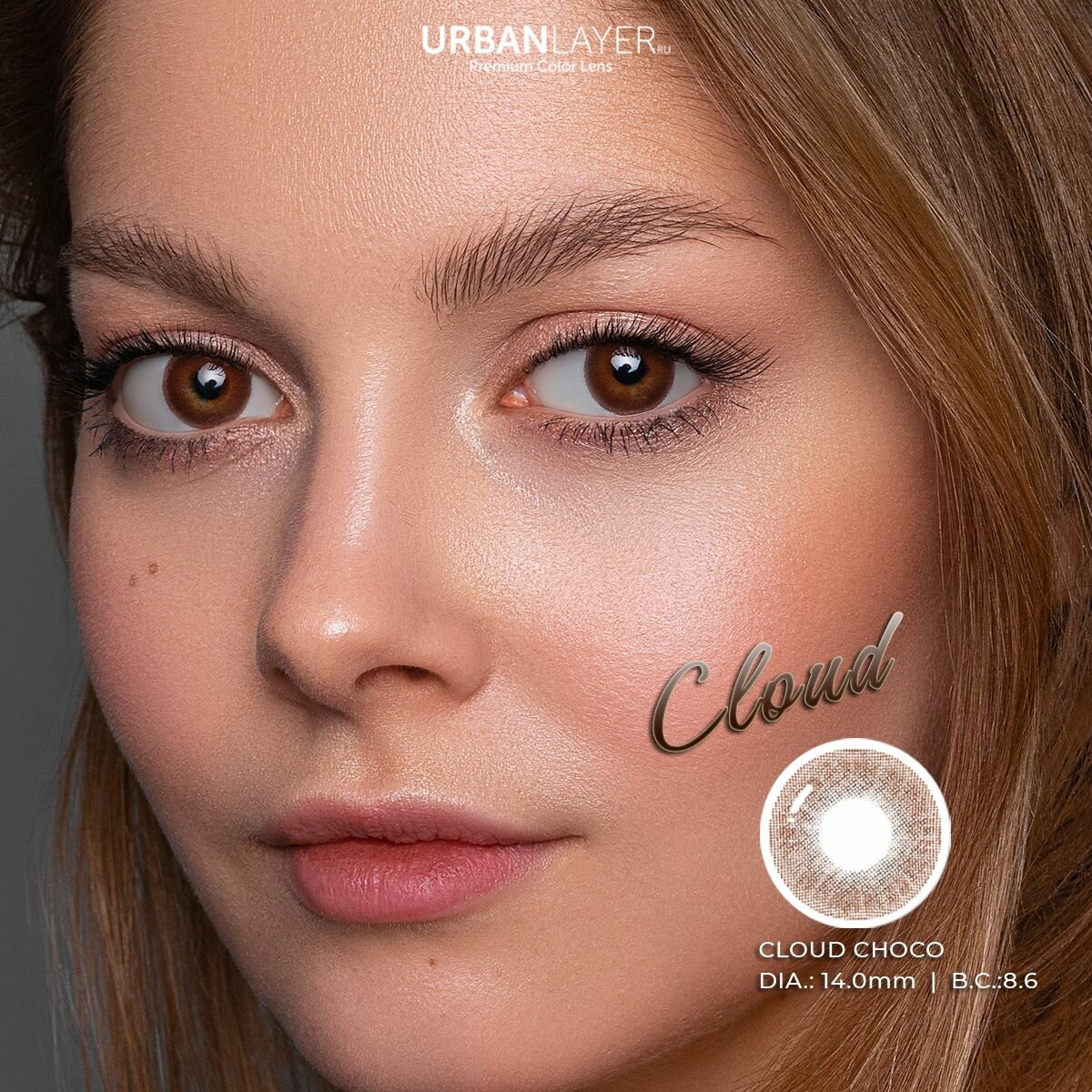 Цветные контактные линзы без диоптрий URBAN LAYER ru Cloud Choco 0.00 / 14.0 / 8.6, 2 шт.
