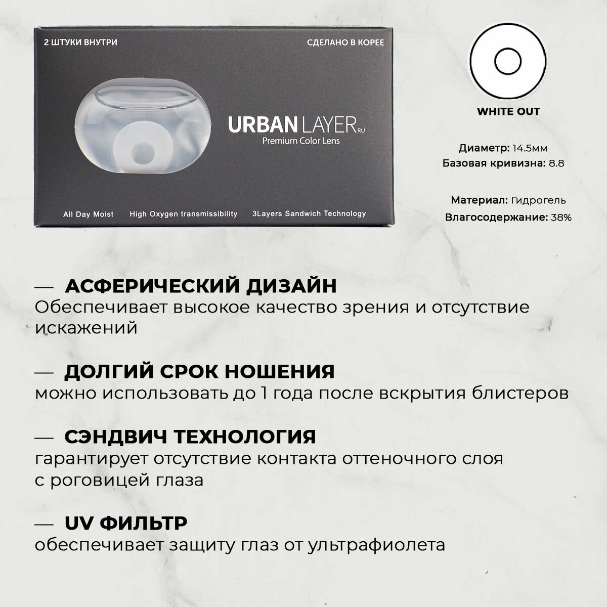 Цветные контактные линзы URBAN LAYER ru White Out -1.5 / 14.5 / 8.8 / 2шт. 1 320 ₽