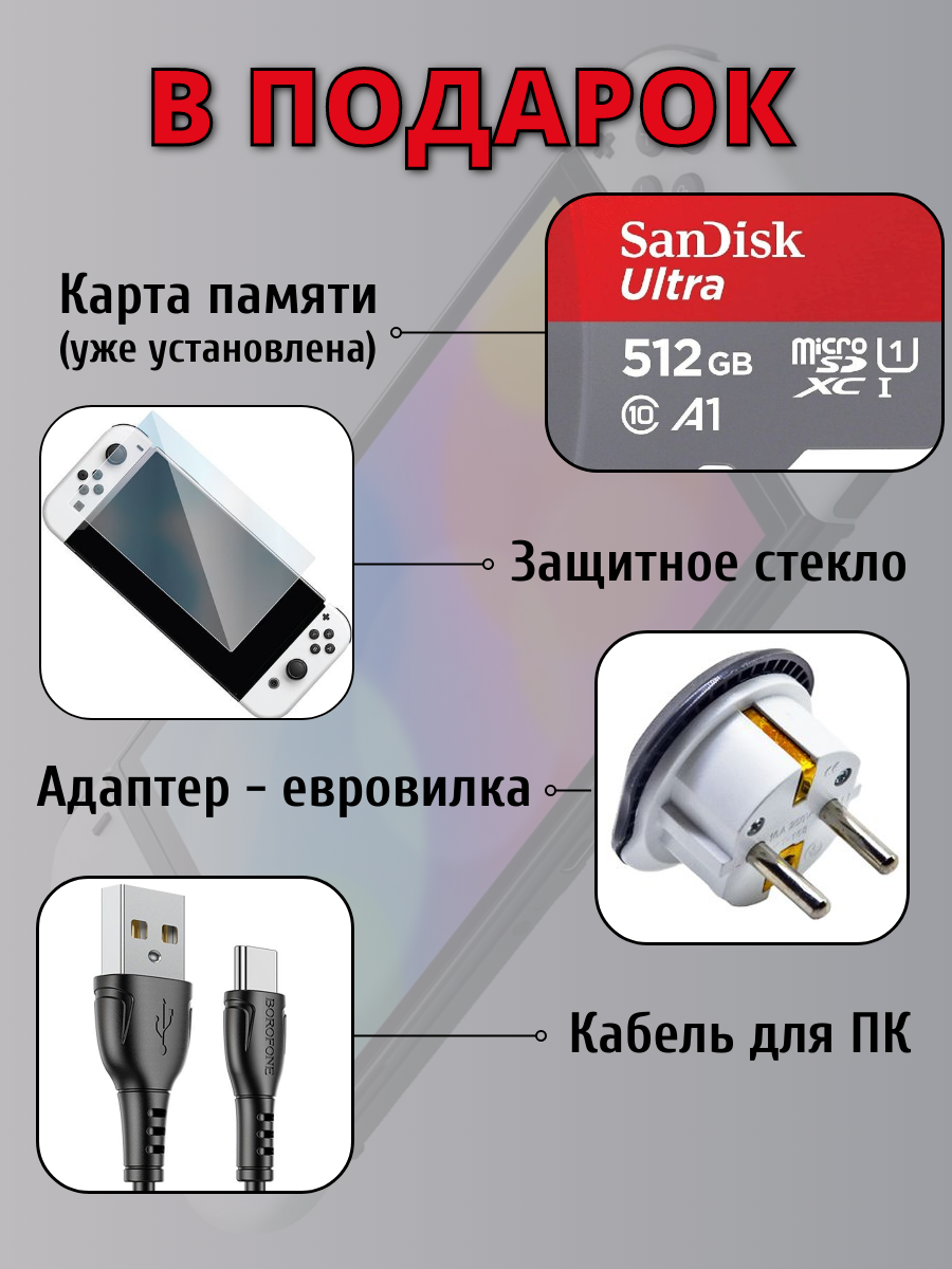 10 цен на Nintendo Switch OLED Прошитая игровая приставка консоль, 512 ГБ, 50 игр в комплекте