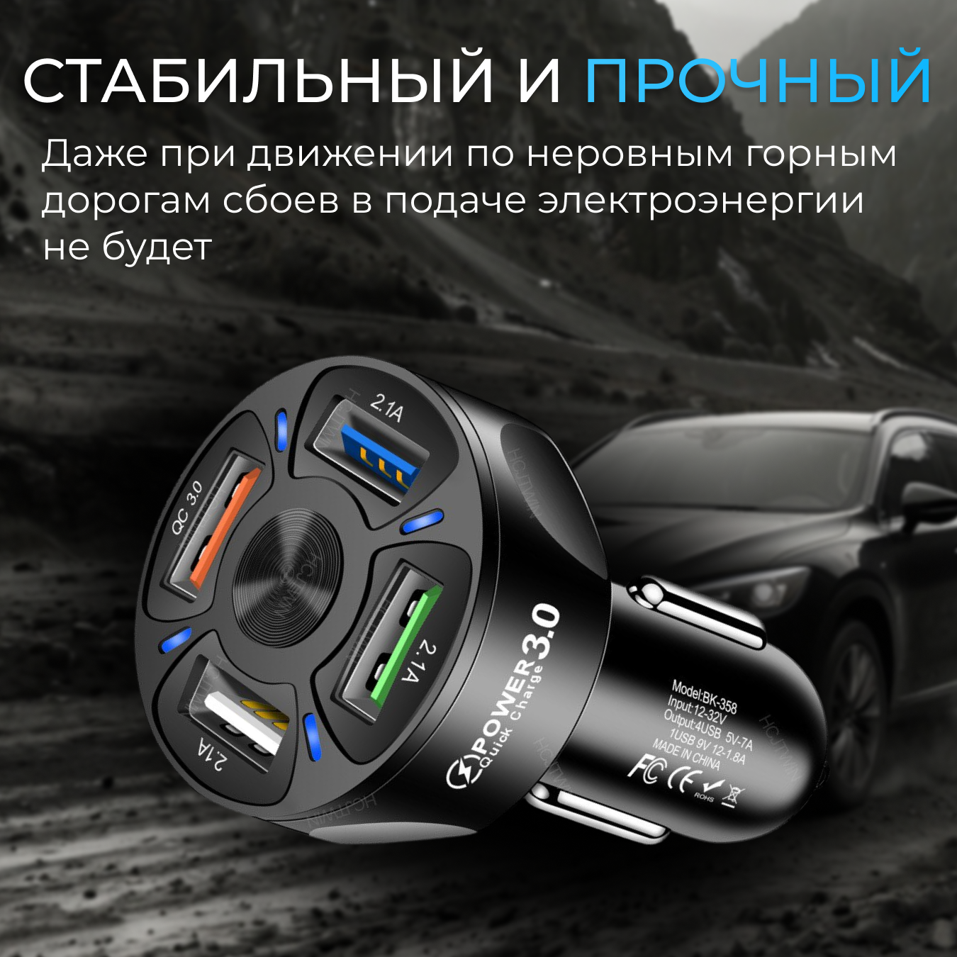 | Особенности | Быстрая зарядка / защита от перегрева / защита от перенапряжения / огнеупорный корпус / разветвитель прикуривателя / светодиодный индикатор / ударопрочный корпус |