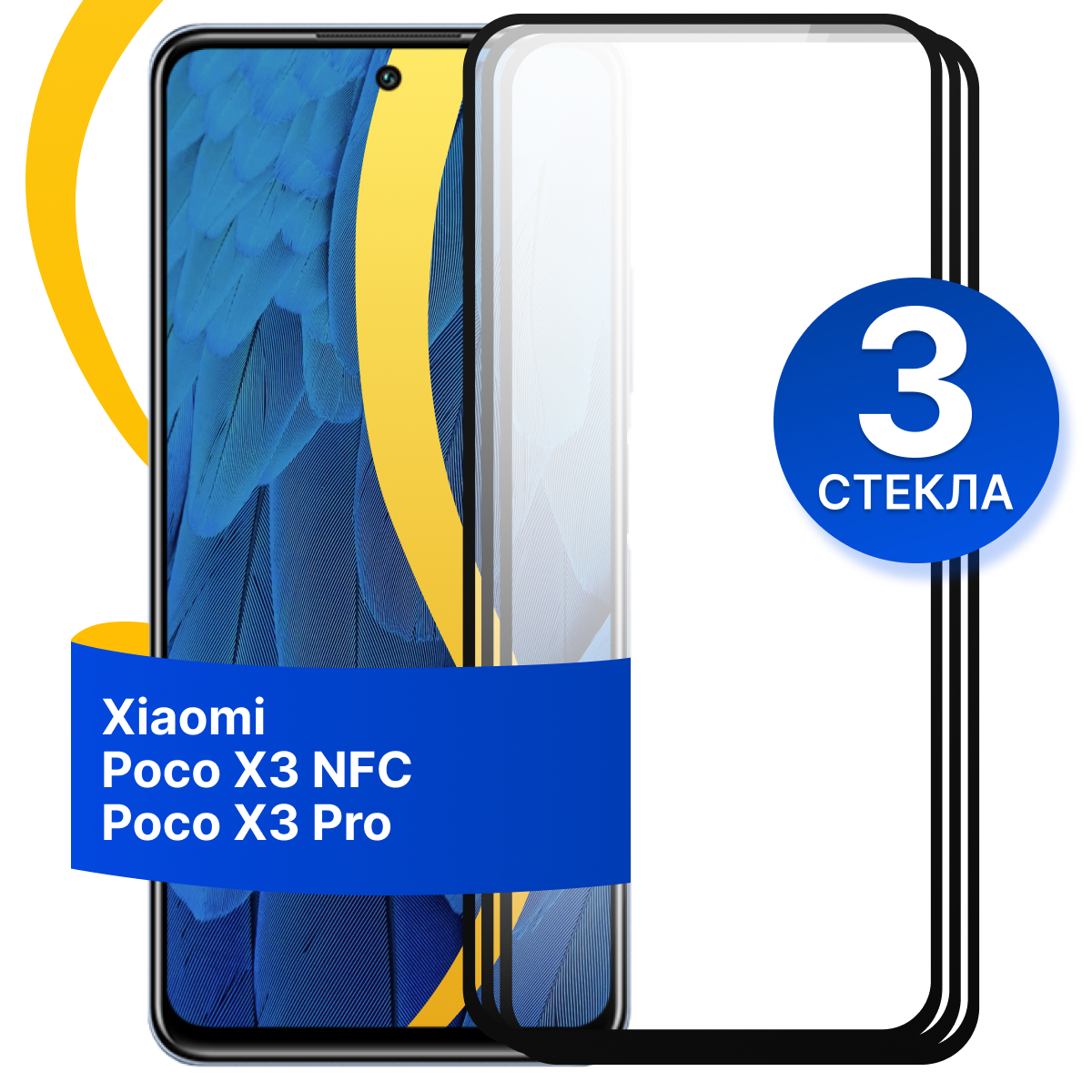 Отзывы на Комплект 3 шт. Защитное стекло для Xiaomi Poco X3 NFC, X3 Pro / Противоударное стекло на Сяоми Поко Х3 НФС, Х3 Про