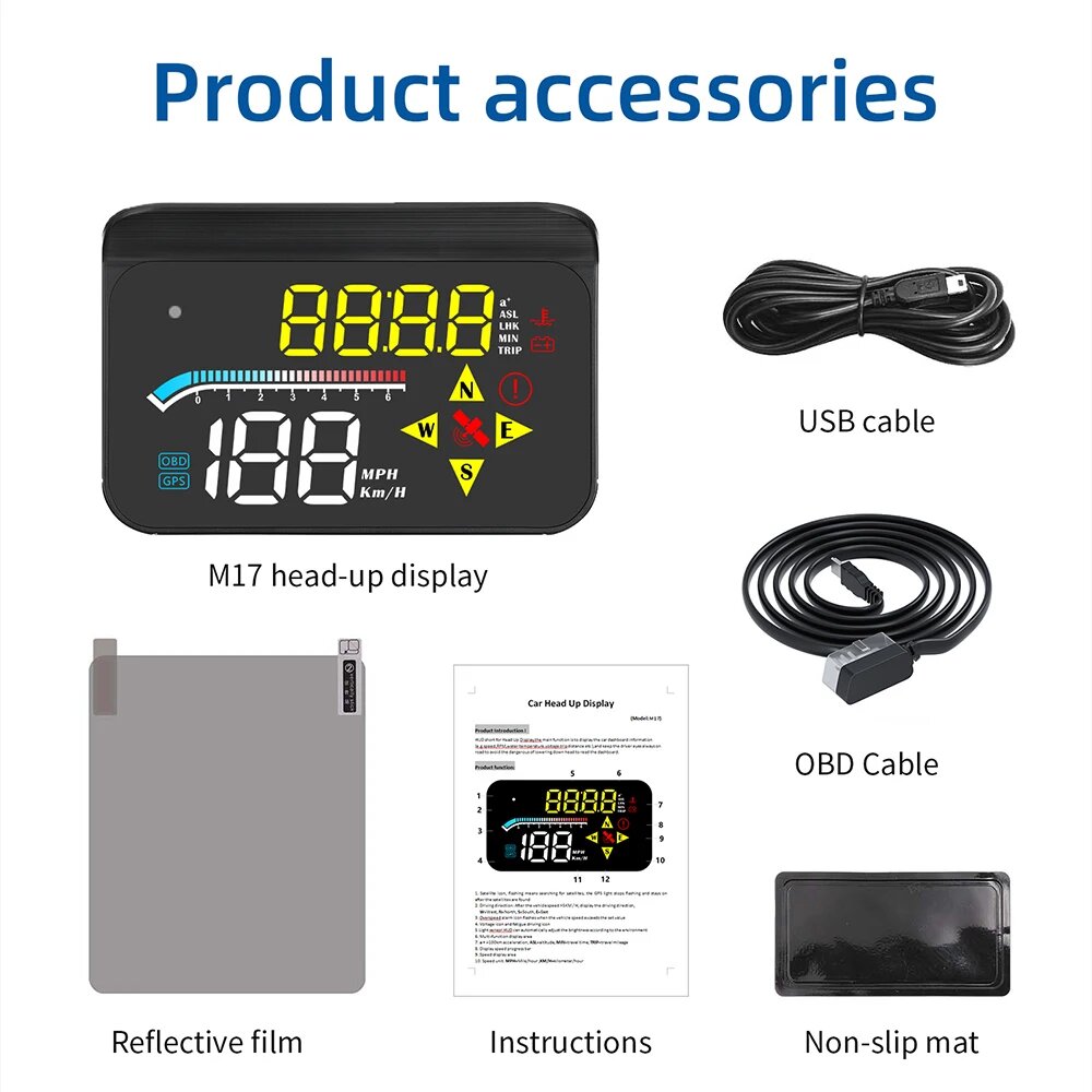 GEYIREN HUD проекционный дисплей авто OBD2 GPS двойная система проектор для автомобильного стекла охранная сигнализация температуры воды электронные аксессуары, M17 информация: