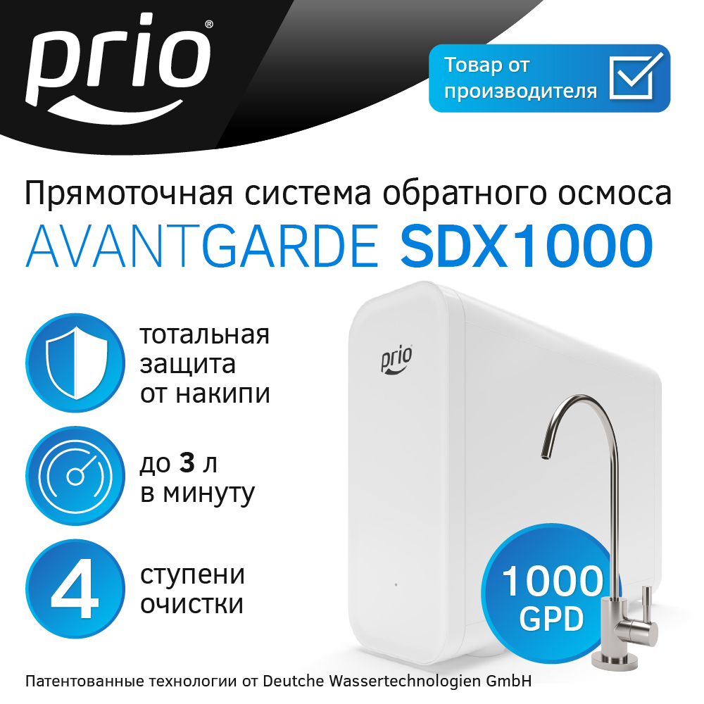 Фильтр для воды под мойку прямоточная система обратного осмоса "всё-в-одном" Prio SDX1000 Avantgarde информация: