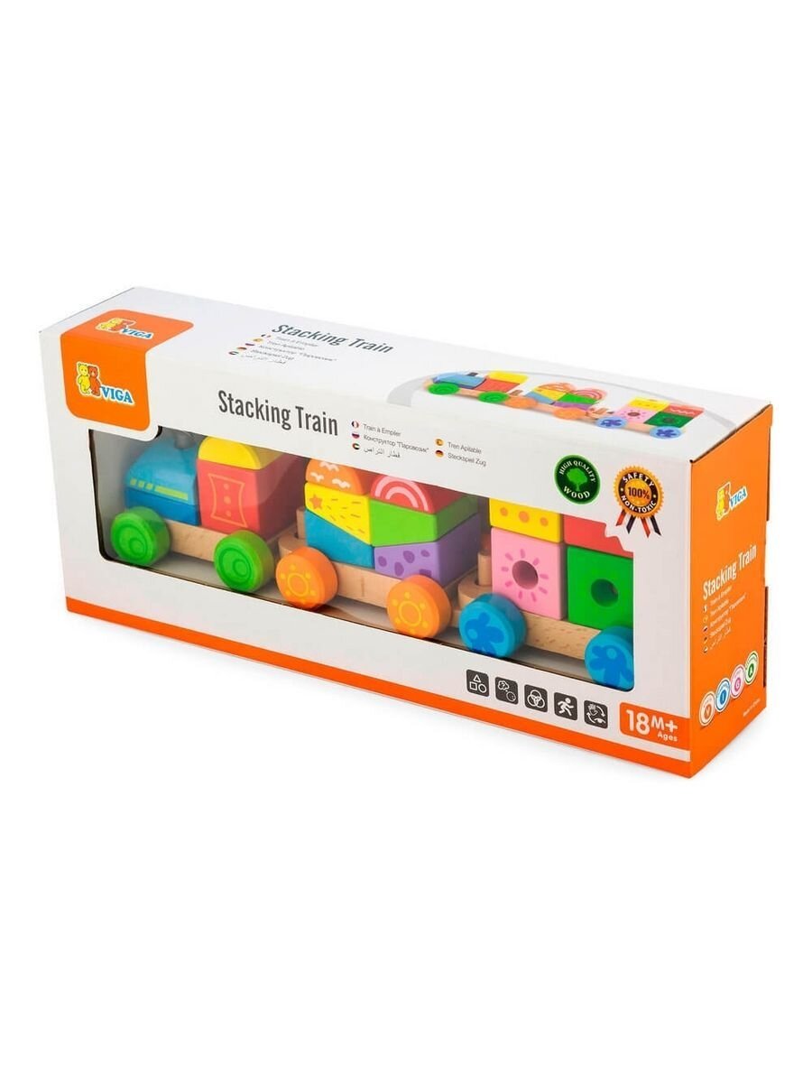 10 цен на Конструктор Viga Toys 50534 поезд яркие кубики (14 деталей + 3 платформы на колесах) (дерево)
