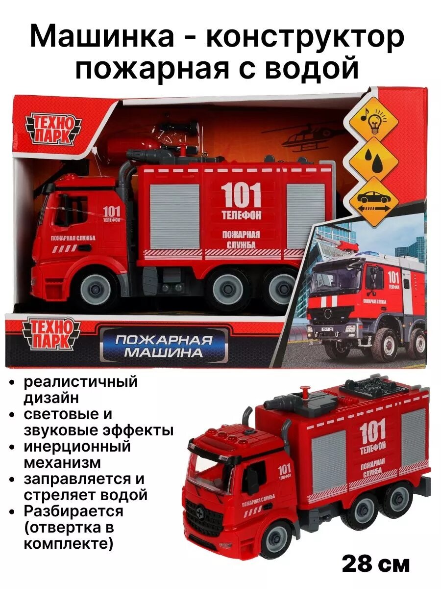 Отзывы на Пожарная машина Технопарк, пластиковая, инерционная, свет, звук 1910К593-R