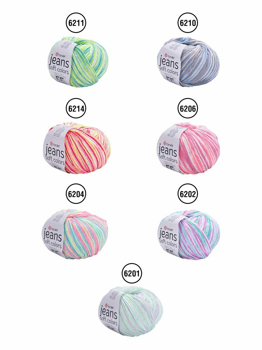 Отзывы на Пряжа YarnArt "Jeans Soft Colors", 50 гр 160 м, 55% хлопок, 45% акрил, 6207 секционный, 10 шт