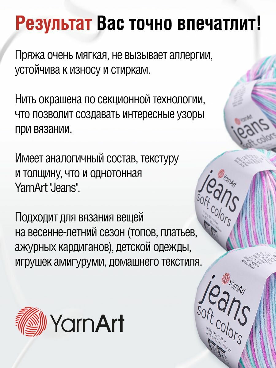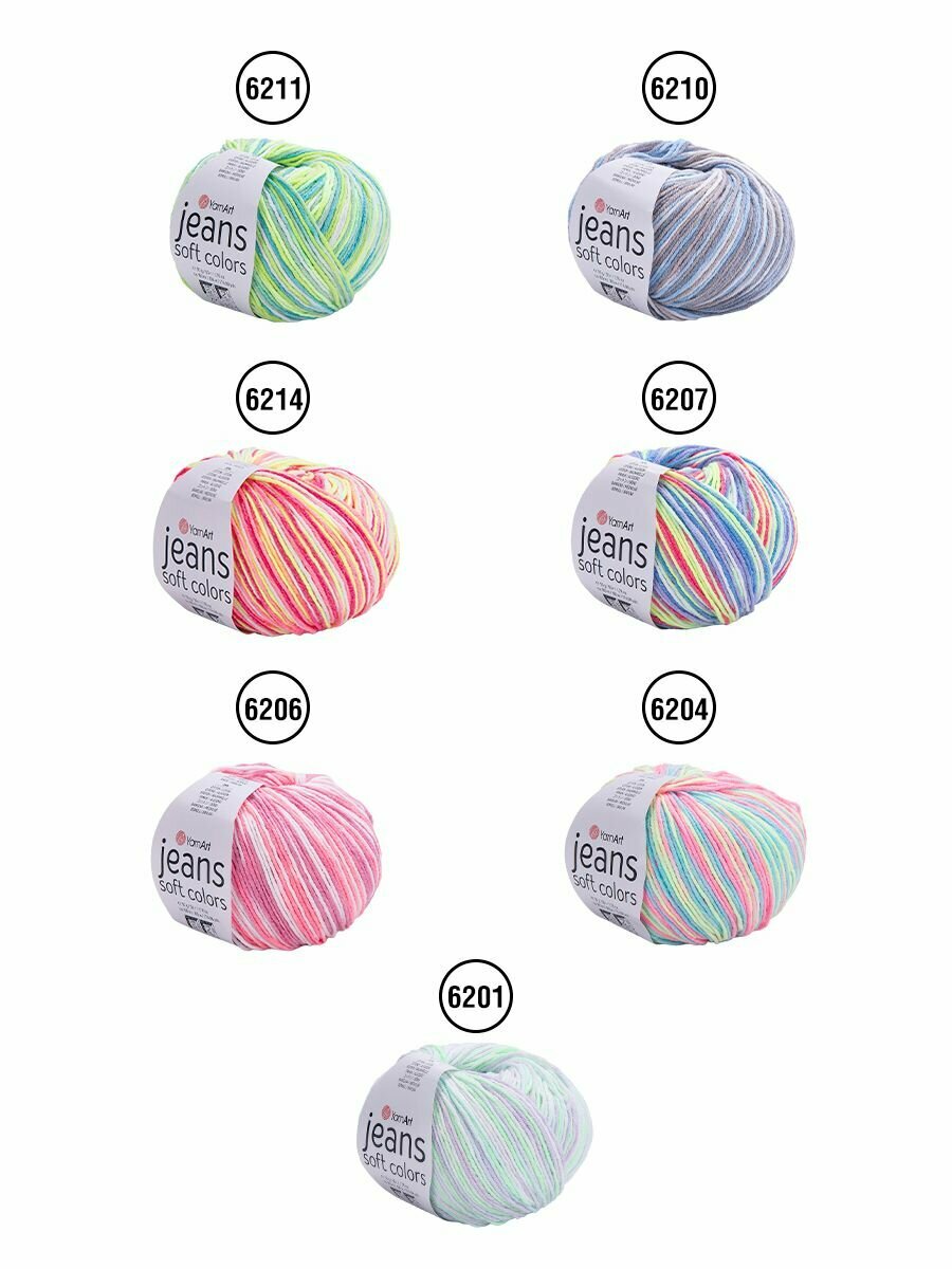 Отзывы на Пряжа YarnArt "Jeans Soft Colors", 50 гр 160 м, 55% хлопок, 45% акрил, 6202 секционный, 10 шт