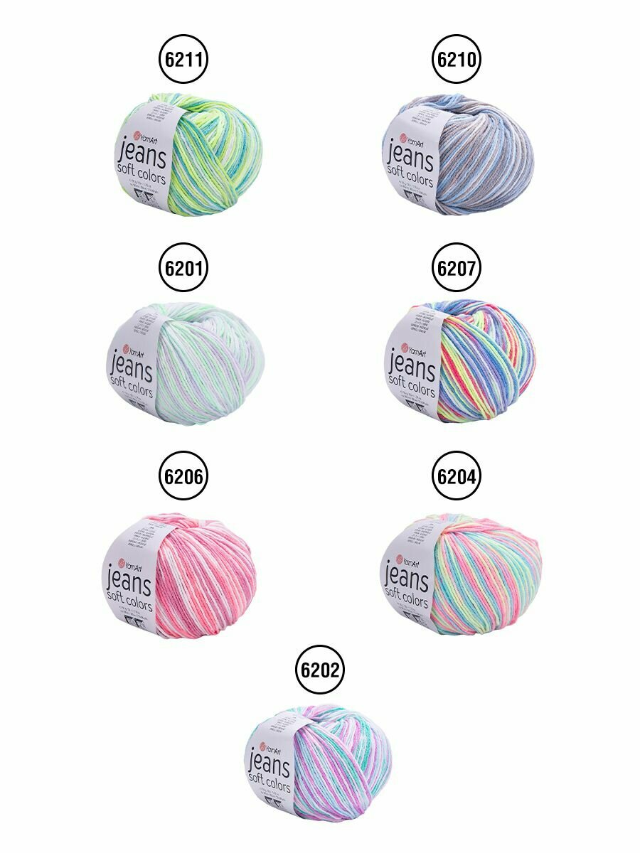 Отзывы на Пряжа YarnArt "Jeans Soft Colors", 50 гр 160 м, 55% хлопок, 45% акрил, 6214 секционный, 10 шт