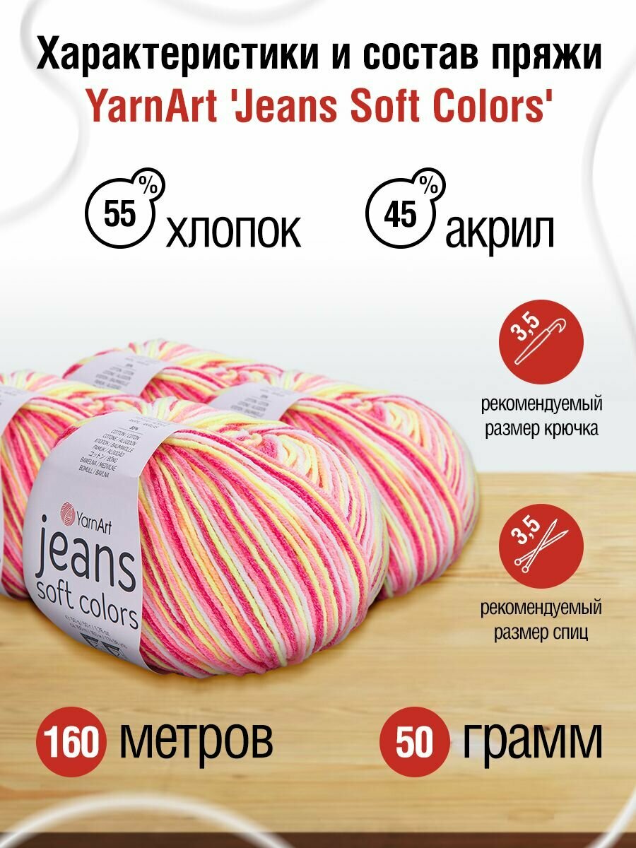 Пряжа YarnArt "Jeans Soft Colors", 50 гр 160 м, 55% хлопок, 45% акрил, 6214 секционный, 10 шт информация: