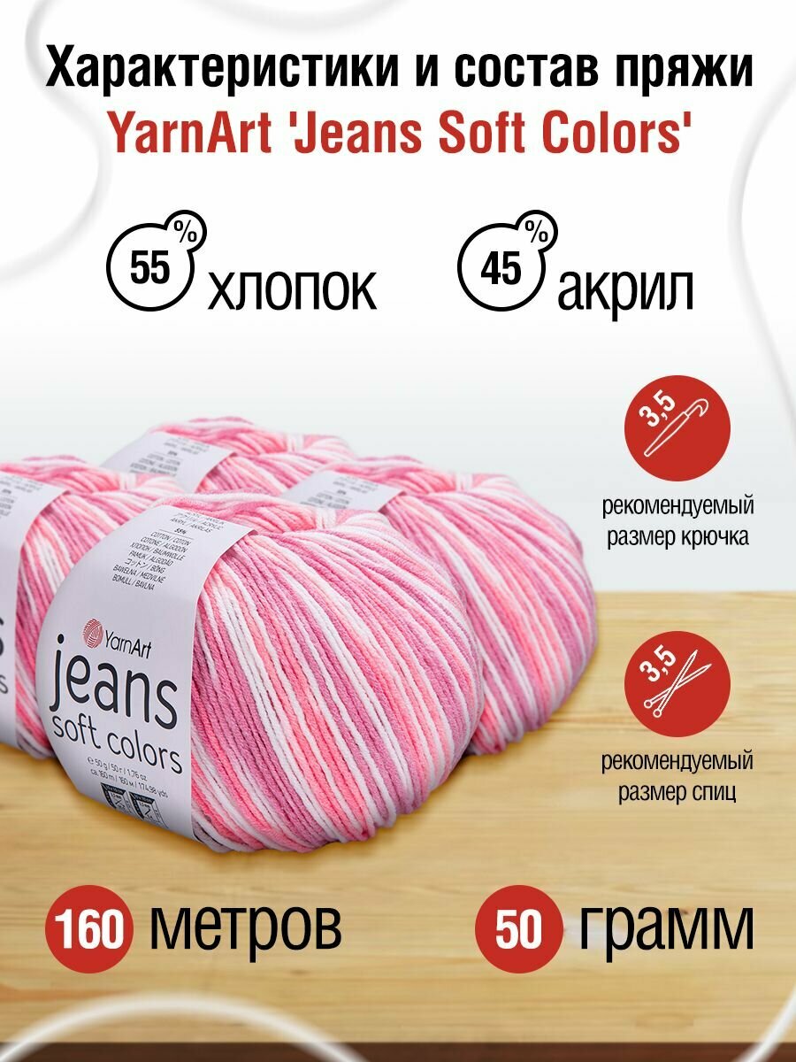 Пряжа YarnArt "Jeans Soft Colors", 50 гр 160 м, 55% хлопок, 45% акрил, 6214 секционный, 10 шт 1 756 ₽