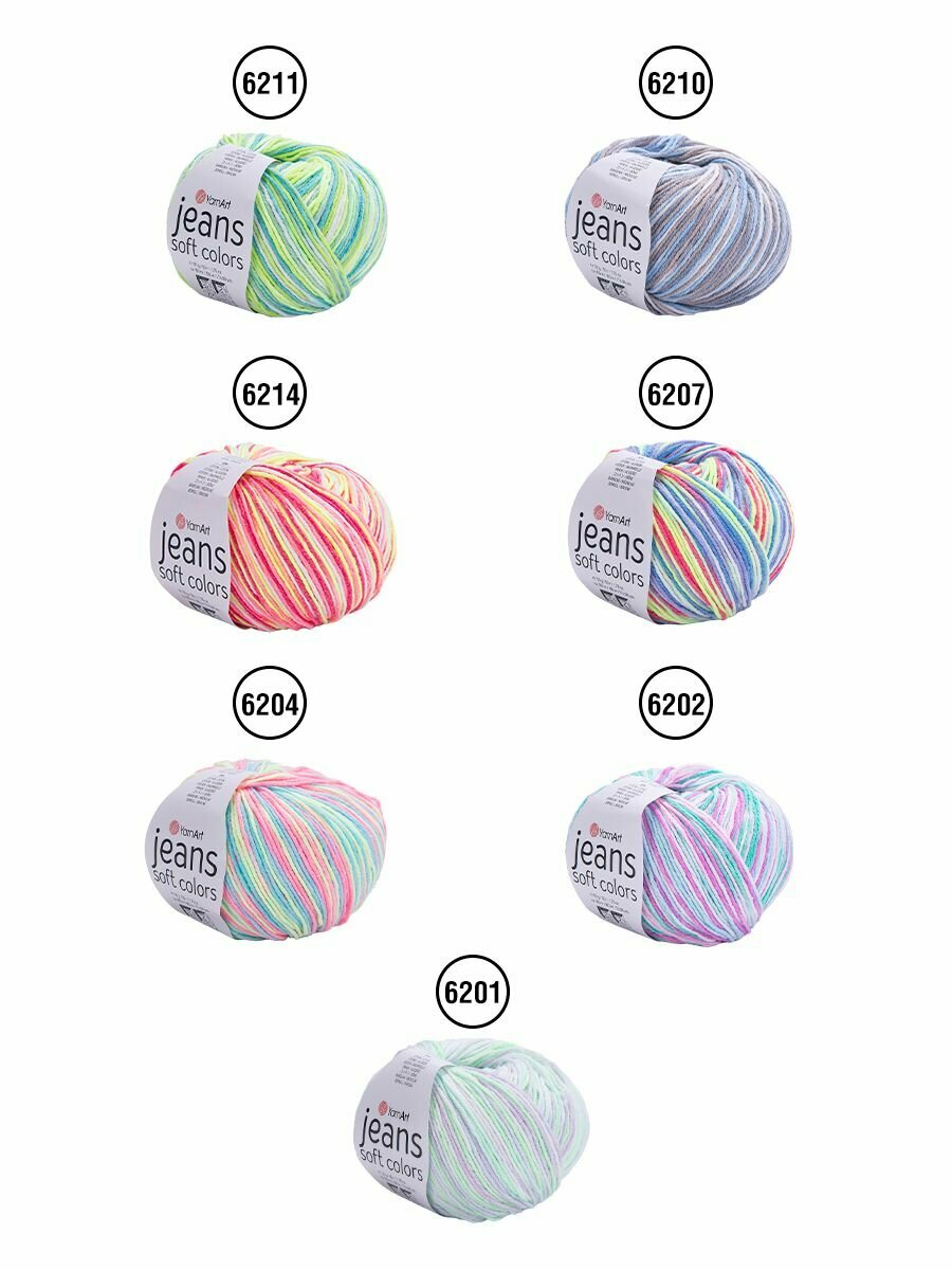 Отзывы на Пряжа YarnArt "Jeans Soft Colors", 50 гр 160 м, 55% хлопок, 45% акрил, 6206 секционный, 10 шт
