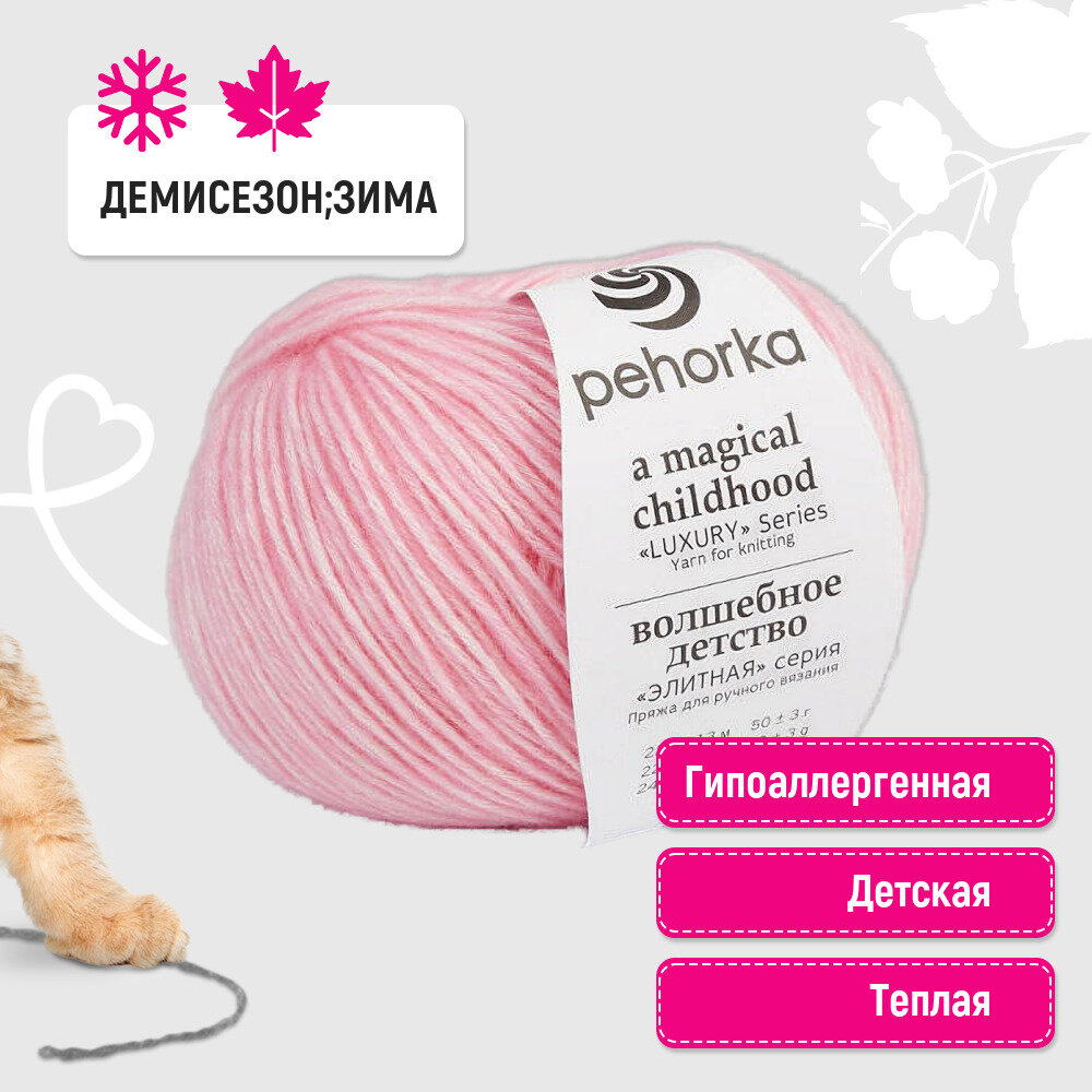 Отзывы на Пряжа Волшебное детство Пехорка, св.бегония - 180, 100% мериносовая шерсть, 5 мотков, 50 г., 220 м.