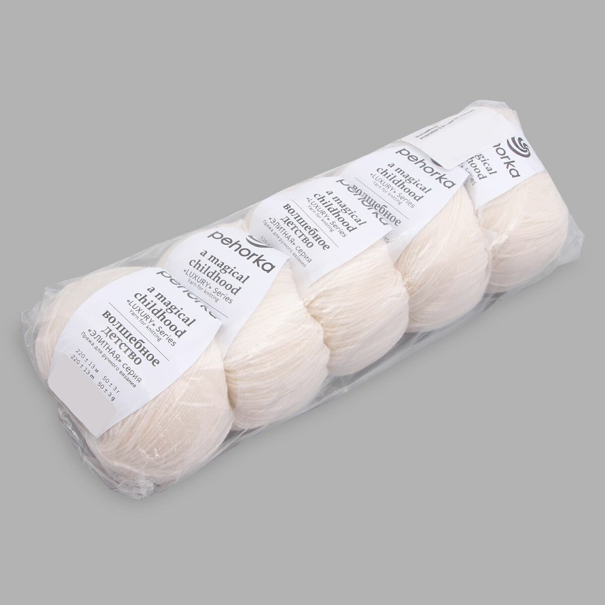 Пряжа Пехорка Волшебное детство 01 белый (50г/220м, упаковка 5 мотков) 1 670 ₽