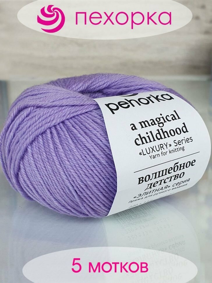10 цен на Пряжа Пехорский текстиль "Волшебное детство", 100% мериносовая шерсть, 220 м, №178, светло-сиреневая, 5 шт по 50 г