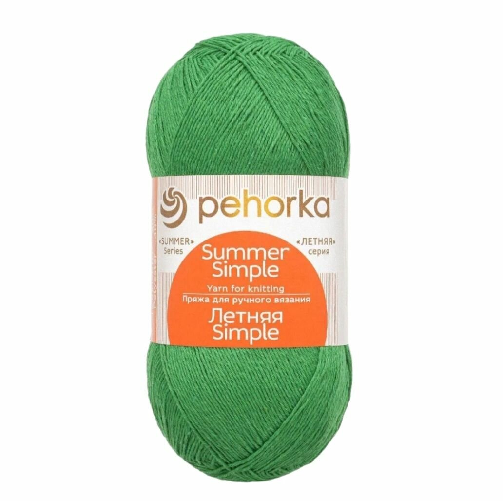 Пряжа Пехорка Летняя Simple Яркая зелень (480) 5 мотков 100 г/500 м (60% хлопок, 40% полиэстер) летняя симпл 799 ₽