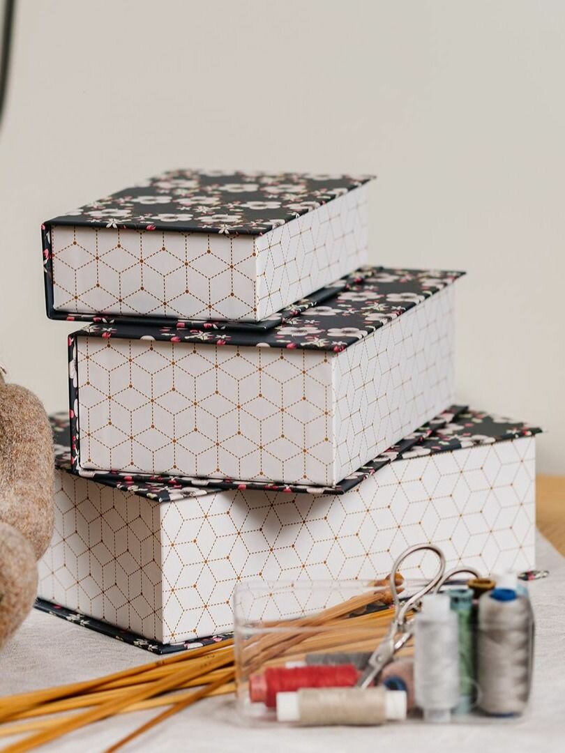 Подарочная Коробка - Шкатулка Cartonnage для рукоделия маленькая, 170 x 120 x 50 мм. "Цветы", черный 854 ₽
