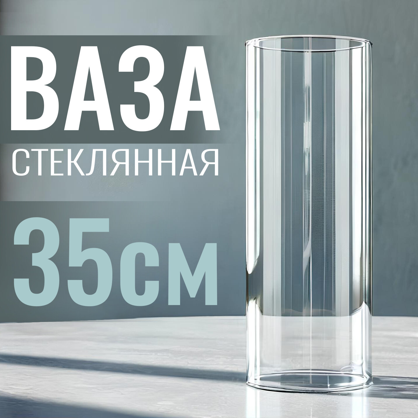 Ваза для цветов стеклянная прозрачная декоративная 40 см
