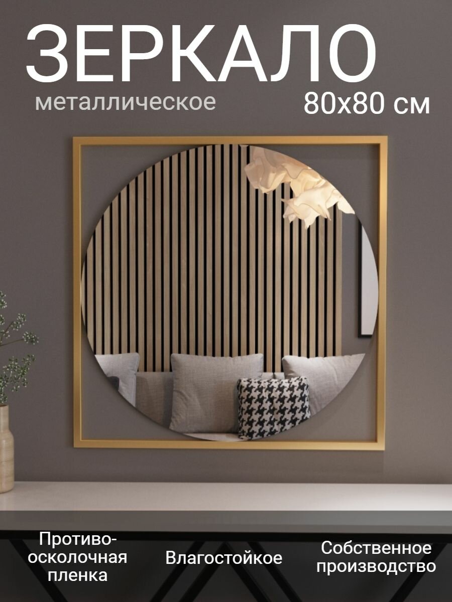Декоративное настенное зеркало Золотое, 80х80 см, для гостиной, спальни, ванной комнаты, прихожей и гардеробной,1 шт информация:
