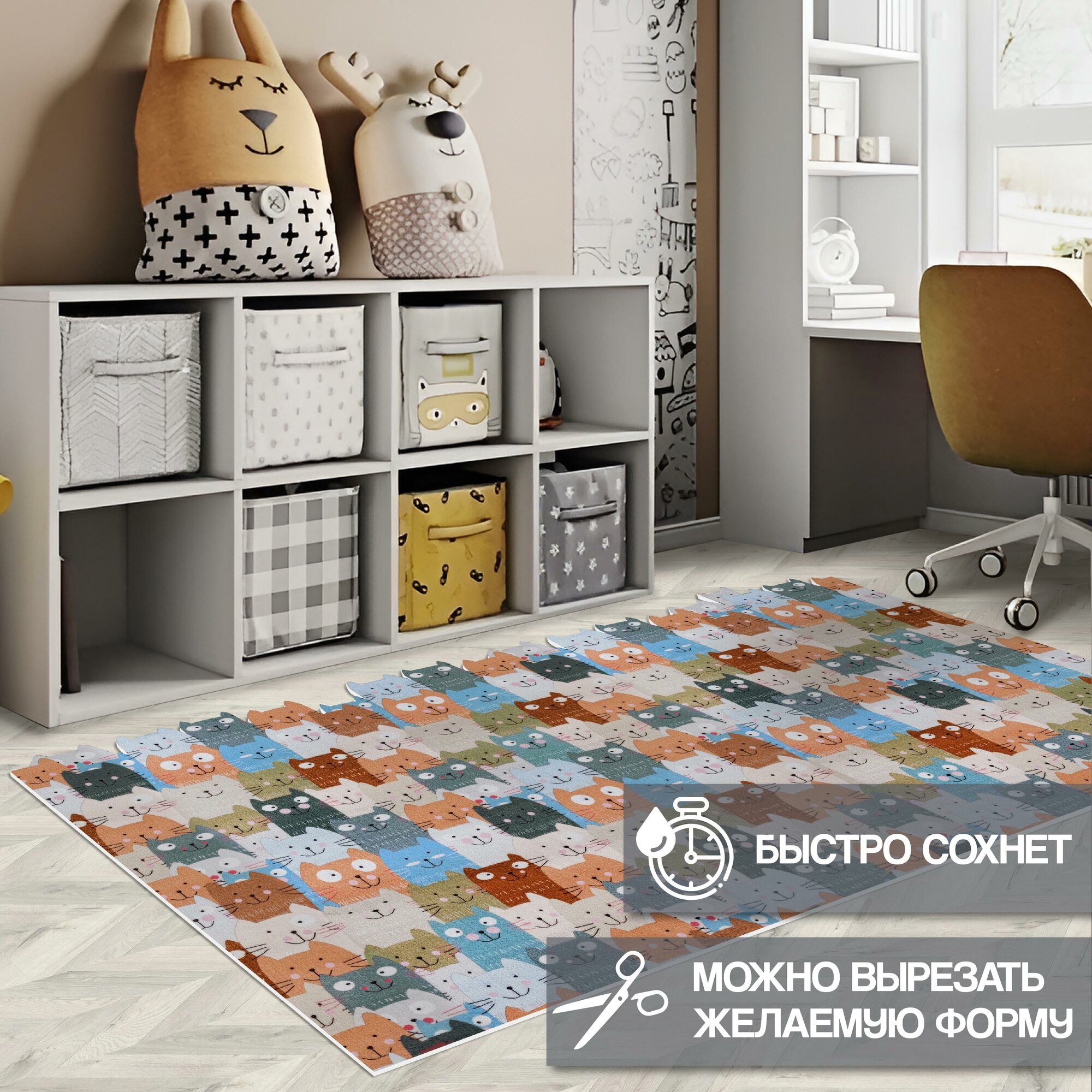 Отзывы на Вырезной придверный коврик в детскую. Ковер в прихожую антискользящий влаговпитывающий PRINT/ размер 150х200см/ цветные коты/ коврик для кухни, для ванной комнаты