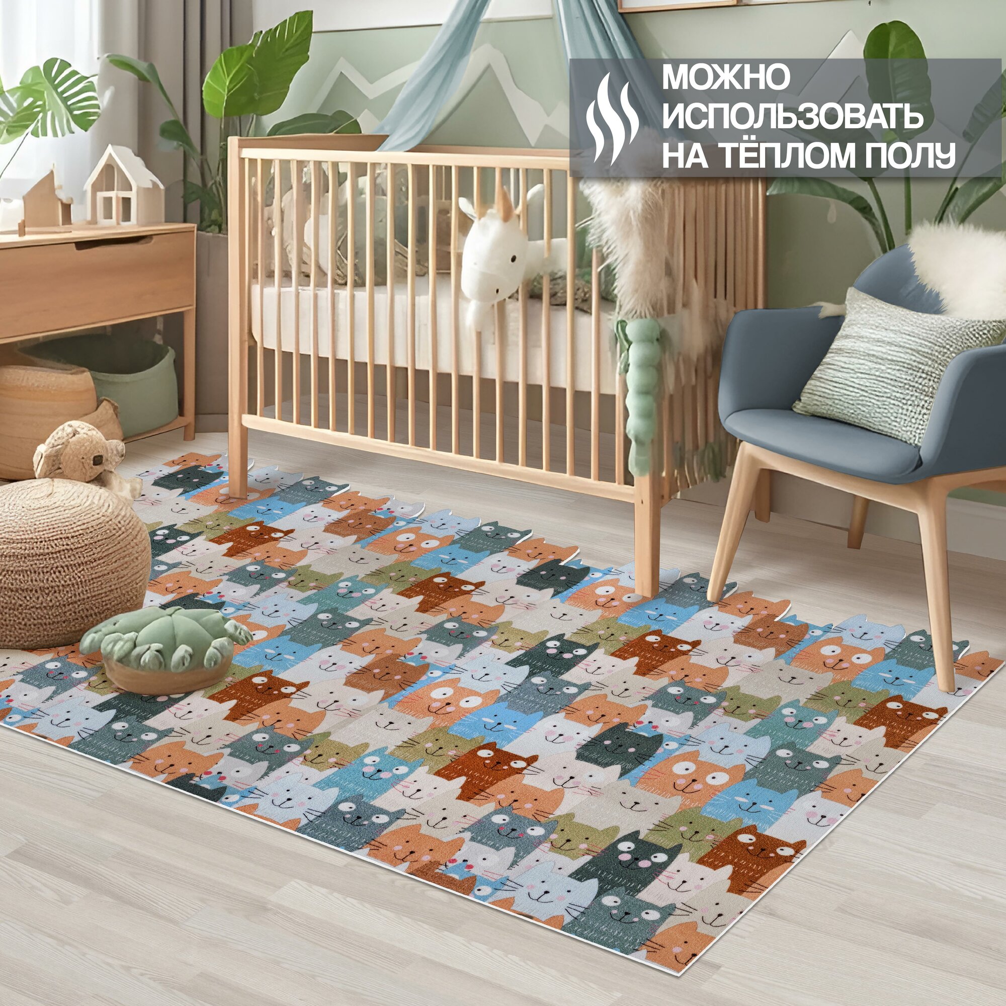Ковер интерьерный, комнатный/ 100*120/Безворсовый, не скользящий/Котики 144 2 221 ₽