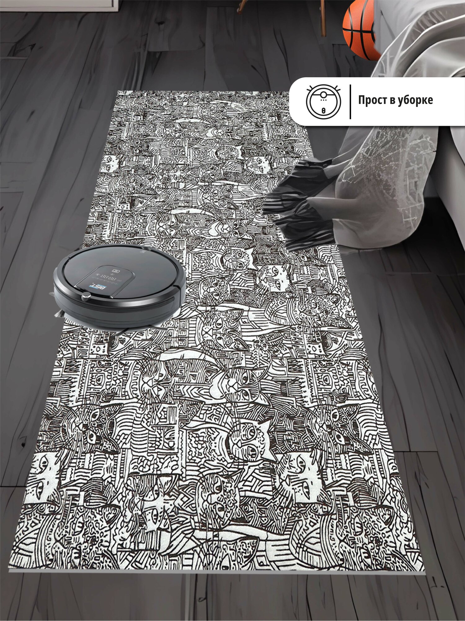 Ковер дорожка интерьерный, комнатный на пол/ 80*200/Безворсовый, не скользящий/Черно белый кот/ 144 2 990 ₽