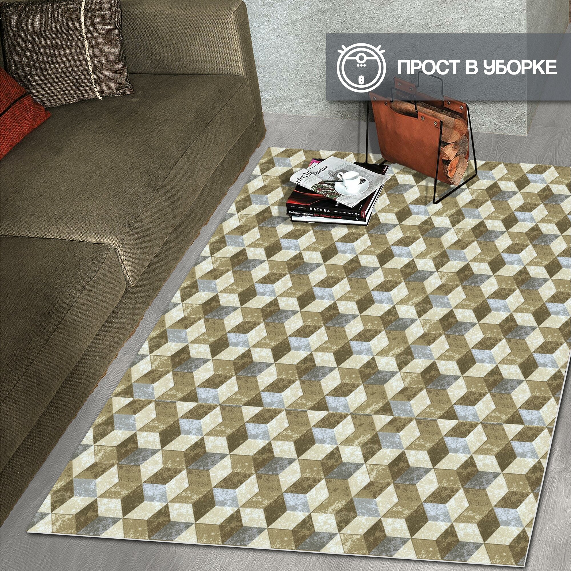 Коврик придверный вырезной Icarpet PRINT/ 100х150 см/ 3D Куб серо-бежевый, коврик прикроватный, коврик для кухни, для ванной информация: