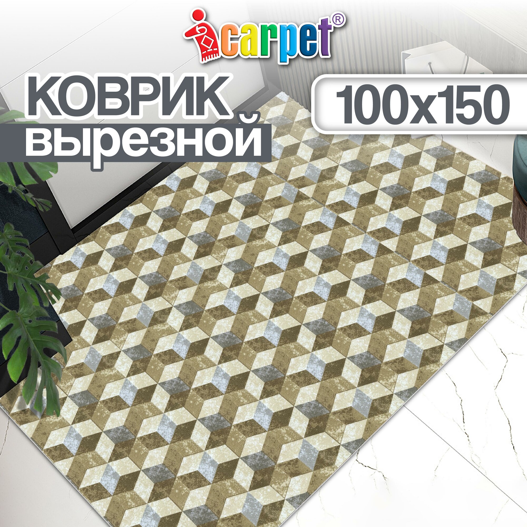 10 цен на Коврик придверный вырезной Icarpet PRINT/ 100х150 см/ 3D Куб серо-бежевый, коврик прикроватный, коврик для кухни, для ванной