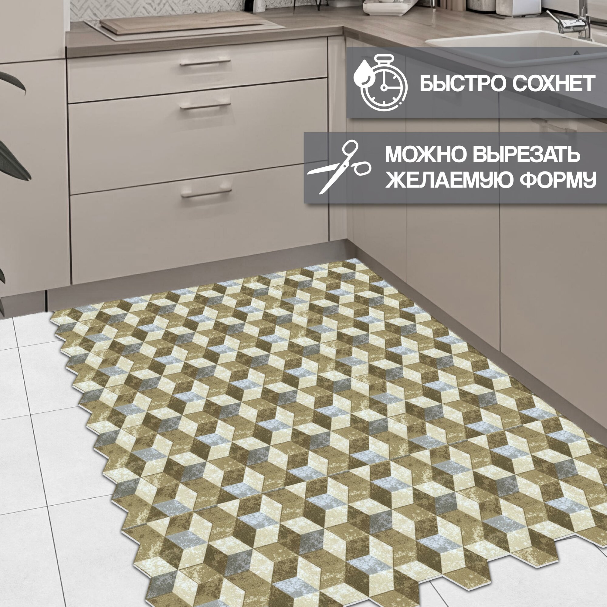 Коврик придверный вырезной PRINT/ 100х150см/ Плитка Карфаген бежевый с серым, коврик прикроватный, коврик для кухни, для ванной 2 309 ₽