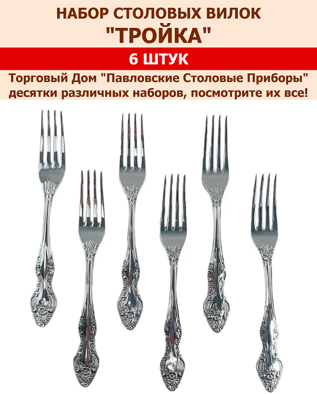 Вилка столовая Тройка, 6 штук, нержавеющая сталь. Павловский завод (Павлово, Россия) информация: