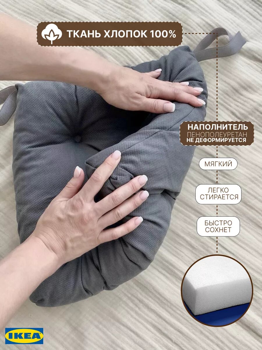 Отзывы на Подушка на стул IKEA Малинда, на липучках, поролоновый наполнитель, 38x40 см набор 2 шт серая